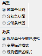 参数设置如下所示,作图类型选择“简单条状图”,数据选择“观测量分类描述模式”,图形描述的是“记录数”,类轴为“性别”:
