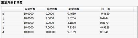 期望频数和残差表:列出的为各剂量组的观测值、期望值以及残差,表中第一栏列出的为试验剂量变量。