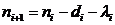 某一组的案例总数目为n,k为观察时间点数目,di为第i个时间点的失效事件数目,ni为第i个时间点的观察案例数目,入i为第i个时间点的删失事件数目。